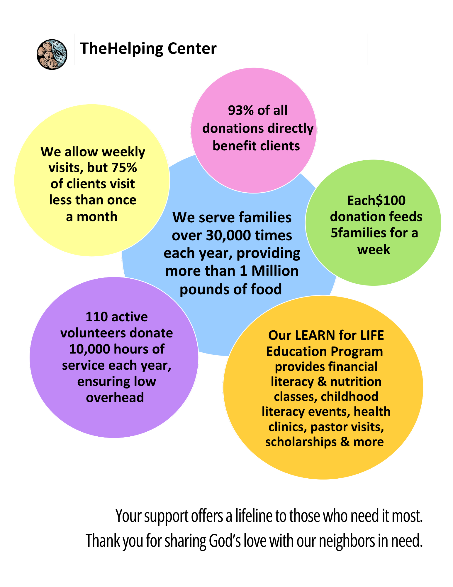 $10 donated to The Helping Center provides a family with healthy foods for one week